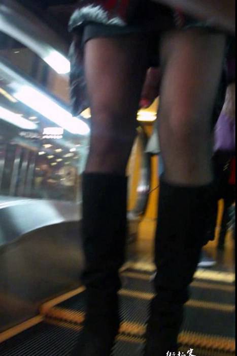 > [街拍视频]00214美女冬天上身羽绒衣下身也要穿黑丝