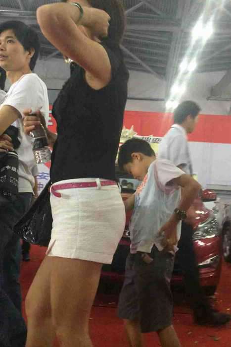 [街拍视频]00396车展上的白色热裤少妇